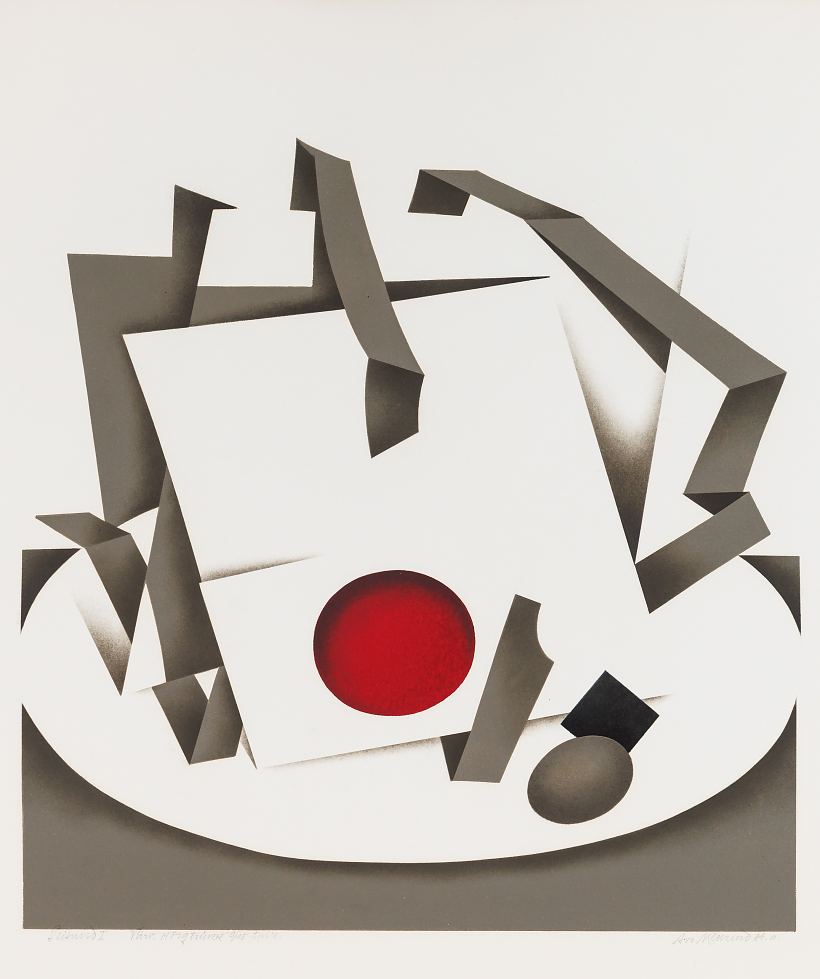 Avo Keerend (1920–2012) 12 Seisund I 1984 Avo Keerend on tuntud geomeetrilise abstraktsionismi meistrina. 1960. aastate alguses alustas Keerend geomeetrilis-konstruktiivsete kompositsioonide loomist, mis olid esemetu kunsti huvitavaimaks avalduseks tolleaegses graafikas. Avo Keerend on kirjutanud: “1964. aastast peale olen otsinud oma värvi- ja vormilahendusi. Esialgu polnud mu piltidel minekut. Nende sisuline külg pole ju mulle nii tähtis. Näha on eelkõige harmoonia ja vormi selged taotlused. Ka mu värvid peaksid inimestele mõjuma: olen ju graafika kõrvalt tublisti maalimist õppinud.”