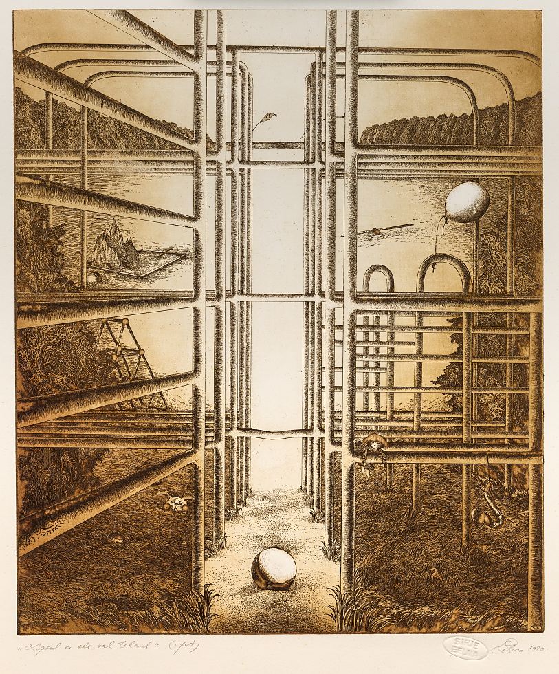 Sirje Eelma (sünd 1950) 4 Lapsed ei ole veel tulnud 1980 Sirje Eelma lõpetas 1975. aastal Eesti Riikliku Kunstiinstituudi moekunstnikuna ja tegutses aastaid Tallinnfilmi kostüümikunstnikuna. Kunstnik kogub inspiratsiooni peamiselt loodusest, arhitektuurist ja moekunstist ning nende mõju on tuntav ka tema loomingus. Enim on kunstnik harrastanud sügavtrükitehnikaid, nagu ofort ja akvatinta. Kunstnik Leonhard Lapin on kirjutanud tunnustavalt Eelmast: “Rahvusvaheliselt kõrgelt koteeritud kunstniku teoste omapäraks on tema natuuriga sobiv hillitsetud hallikas-pruunikas-sinakas koloriit, värvigamma, mida võib näha daami rõivastuseski. Sellega liitub tundlik ning tehniliselt üha täiustuv sügavtrükitehnika, mille puhul võime enam kui mõne tuntud tehnika rakendamisest kõnelda autori enda isiklikust tehnoloogiast, mis on saavutatud aastakümnete pikkuse töö ja katsetamisega. Sirje Eelma loomingu peateemana näeksin inimest. Mitte niivõrd konkreetsete kodanike portreede või figuuridena, vaid just inimese ja tema tegevuse jäljena. On selleks siis majad, toad, aknad, kardinad, esemed, rõivad, valgustid, aga ka mängud ning esemetes või erinevates dokumentides peegelduv ajalugu.”