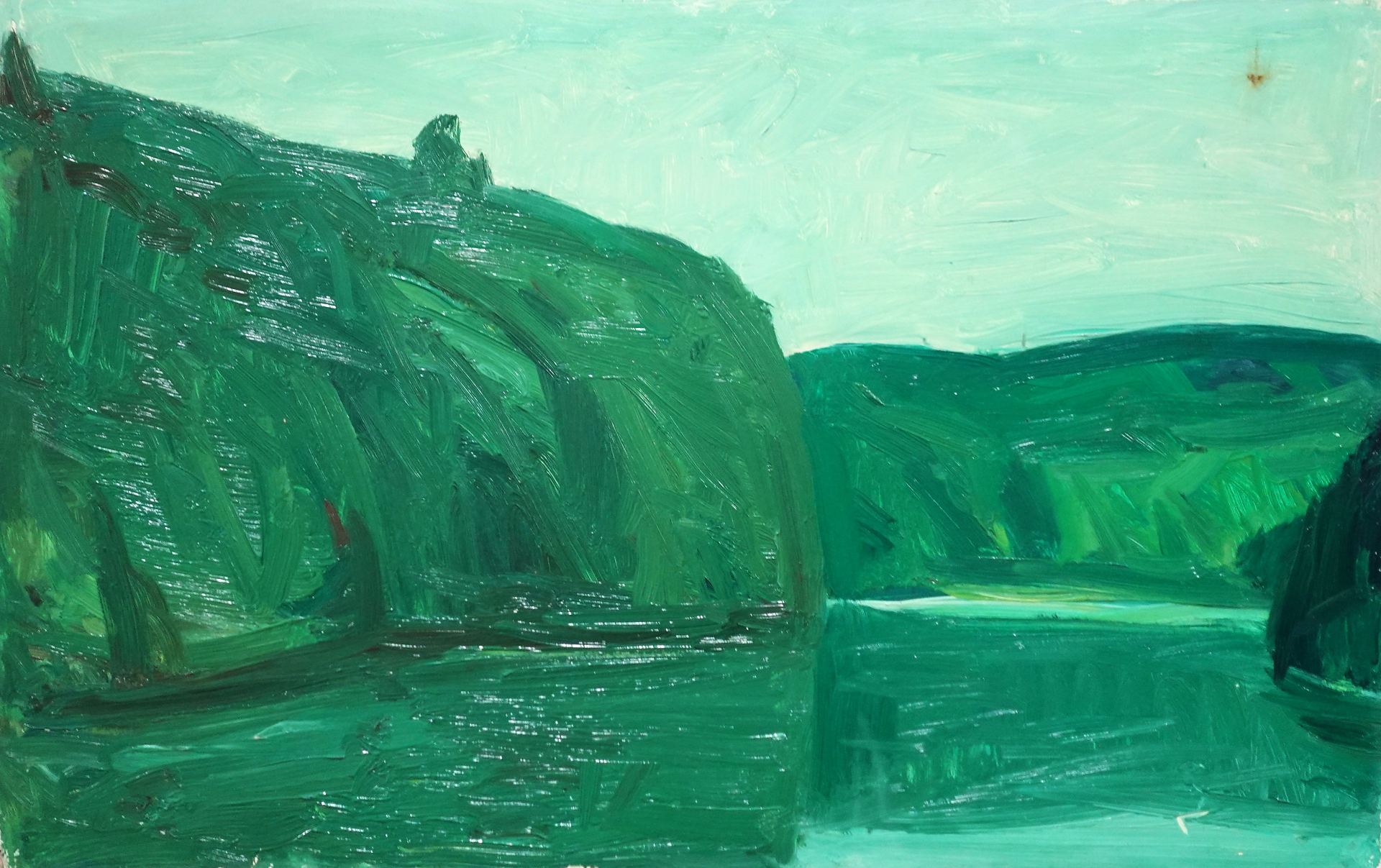 Johannes Uiga (1918–1998) Heleroheline Pühajärv Õli, papp 49,5x78,5