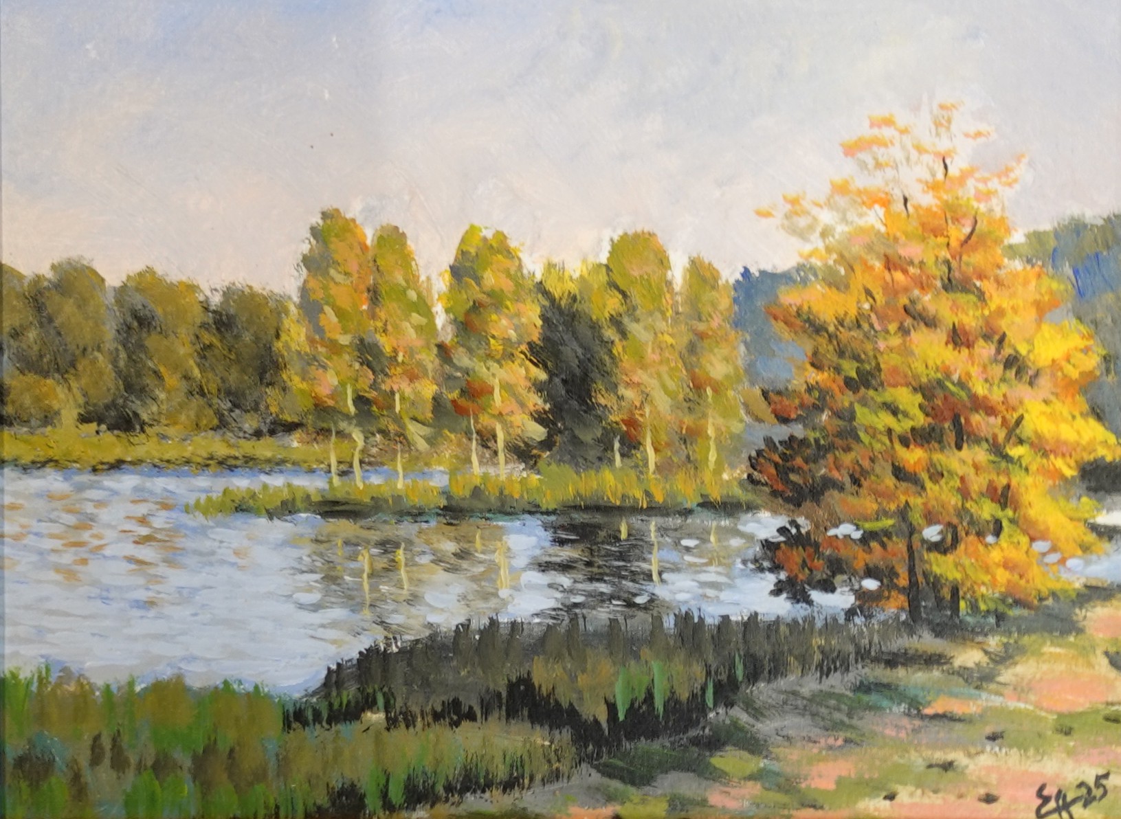 Enno Allik (sünd 1936) Karksi maastik järvega 2025 Akrüül, lõuend papil