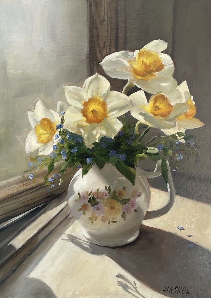 Kristi Haskol (sünd 1989) Lilled aknal 2025 Õli, papp