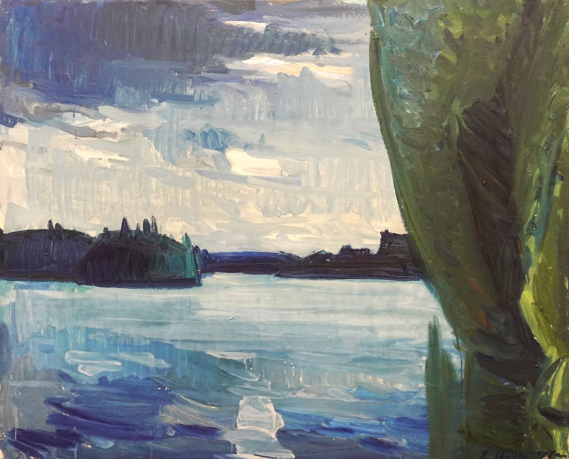 Johannes Uiga (1918–1998) Pühajärve motiiv Lepasaartega 1977 Õli, lõuend