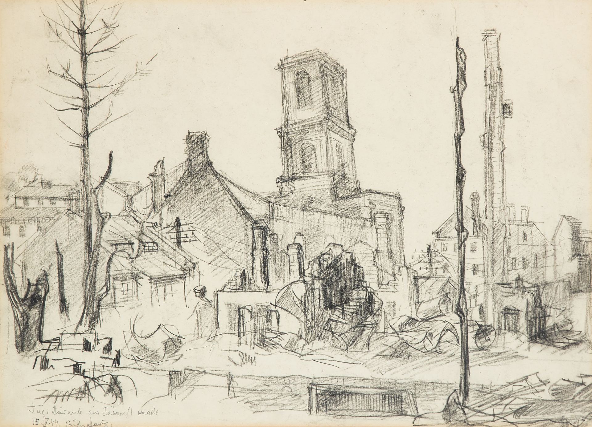 Priidu Aavik (1905 - 1991) Tiigi tänavale Aia tänavalt vaade 1944 Süsi, paber
