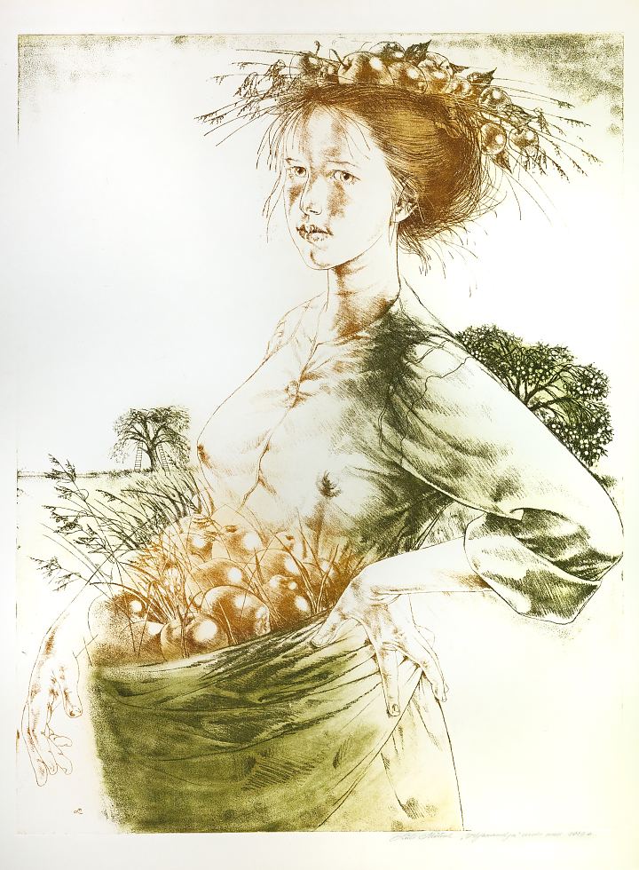 Liili Mõtuste (1950-2008) Viljakandja 1983 Pehmelakk, paber