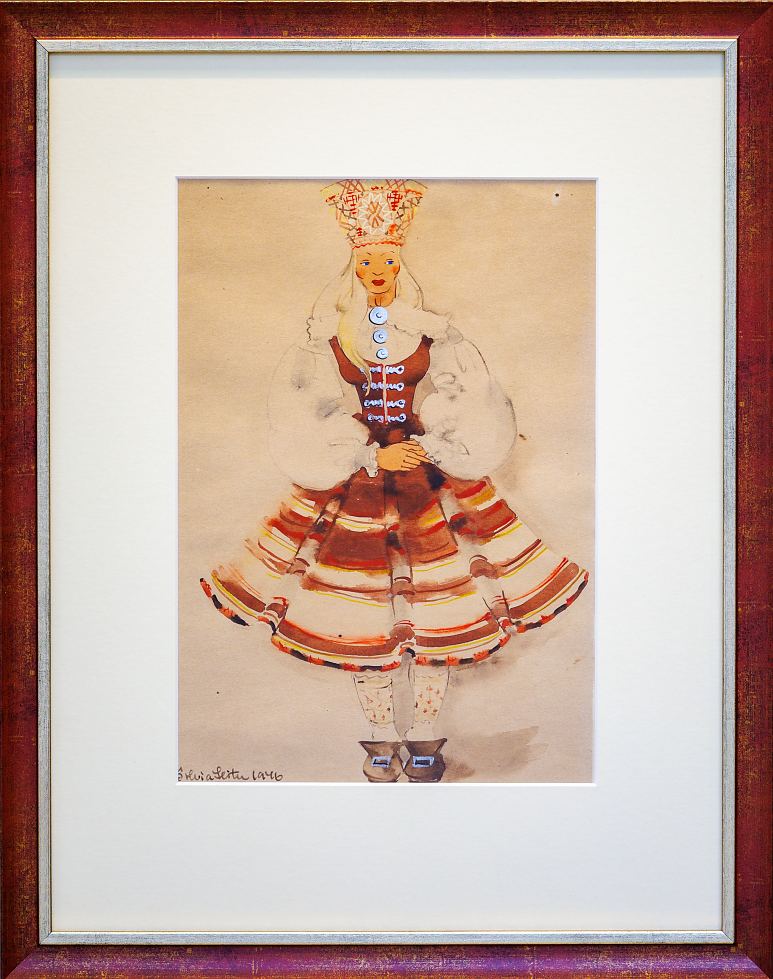 Kunstiteadlane Reet Mark on kirjutanud kunstniku rahvariideainelistest akvarellidest: „Silvia Leitu lõi arvukalt rahvariietes naisi ja neide, vähem poisse ja mehi. Tema rahvariideid kujutavad tööd paistsid oma kõrge kunstilise tasemega teiste rahvusromantiliste maalide seast silma. Varased rahvariietega akvarellid meenutavad väga ka kostüümikavandeid. Kujutatava poos on võrdlemisi jäik, riided detailideni väljatöötatud ning korralikult paikkonniti määratavad. Silvia Leitu rahvariides tüdrukutest on vähemalt kaks korda väljaantud ka postkaarte. Esimest korda ilmselt 1952. aastal. Esinduslikum, kahepoolne ning paksul faktuursel paberil seeria ilmus 1950ndate aastate teisel poolel ehk isegi 1960ndatel.”