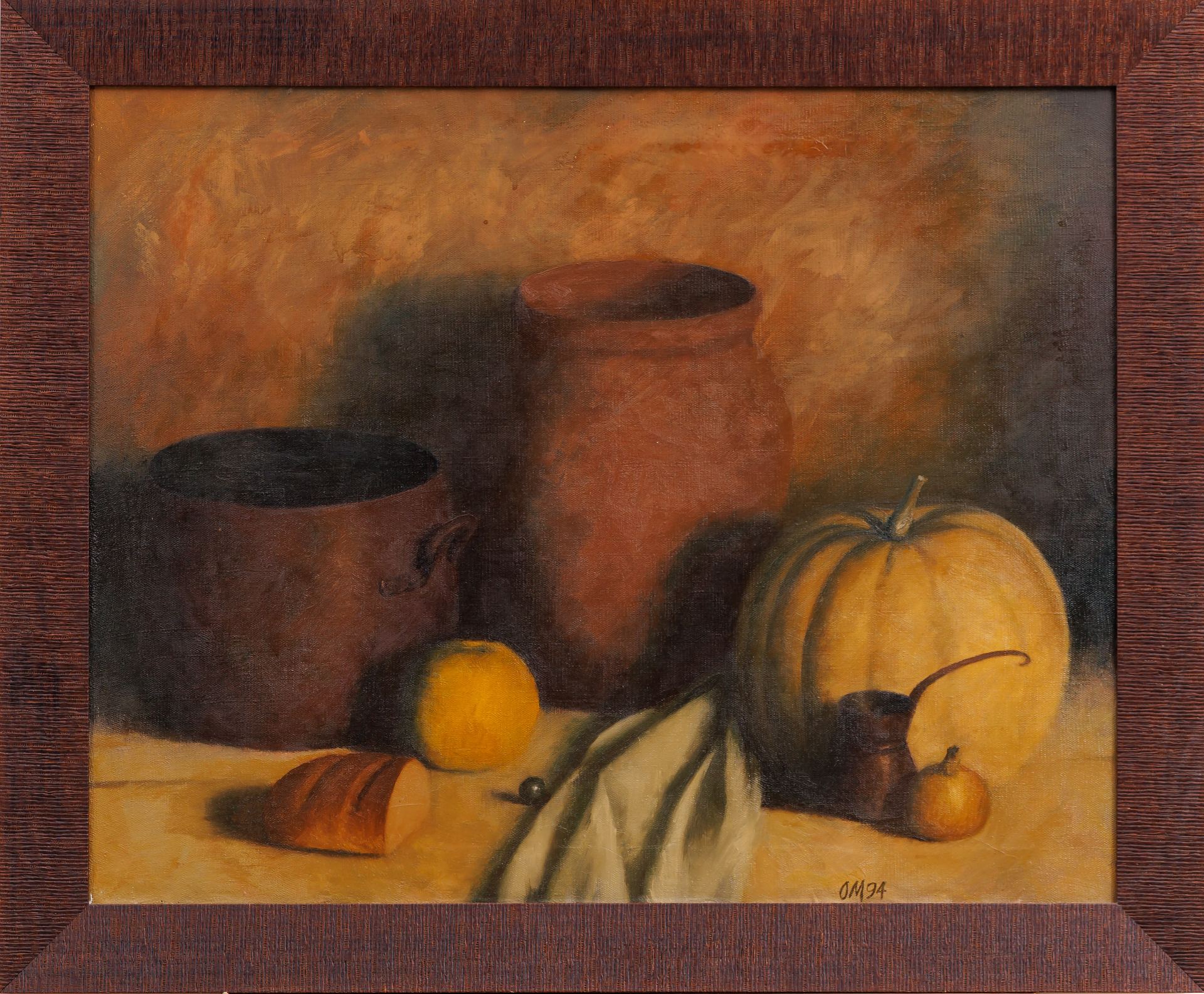 Olav Maran alustas oma kunstnikuteekonda modernistliku kunstiuuendajana, kuid pöördus 1968. aastal religioosse maailmavaate mõjul realistliku ja süvenenud maalikäsitluse poole. Tema loomingu keskmeks on olnud just vaikelu. „Vaikelu kõrvitsa ja metallkuuliga“ kuulub kunstniku küpsesse perioodi, kus tema töödesse lisandus meditatiivne ja filosoofiline mõõde.