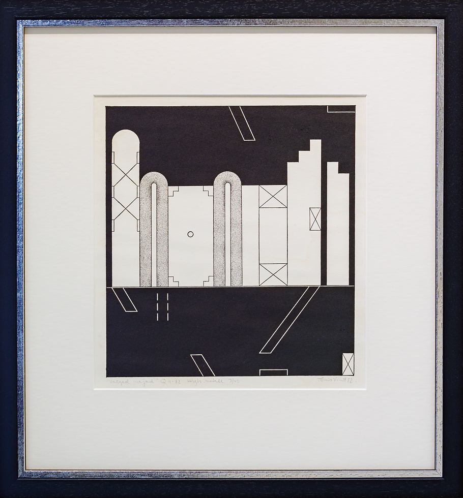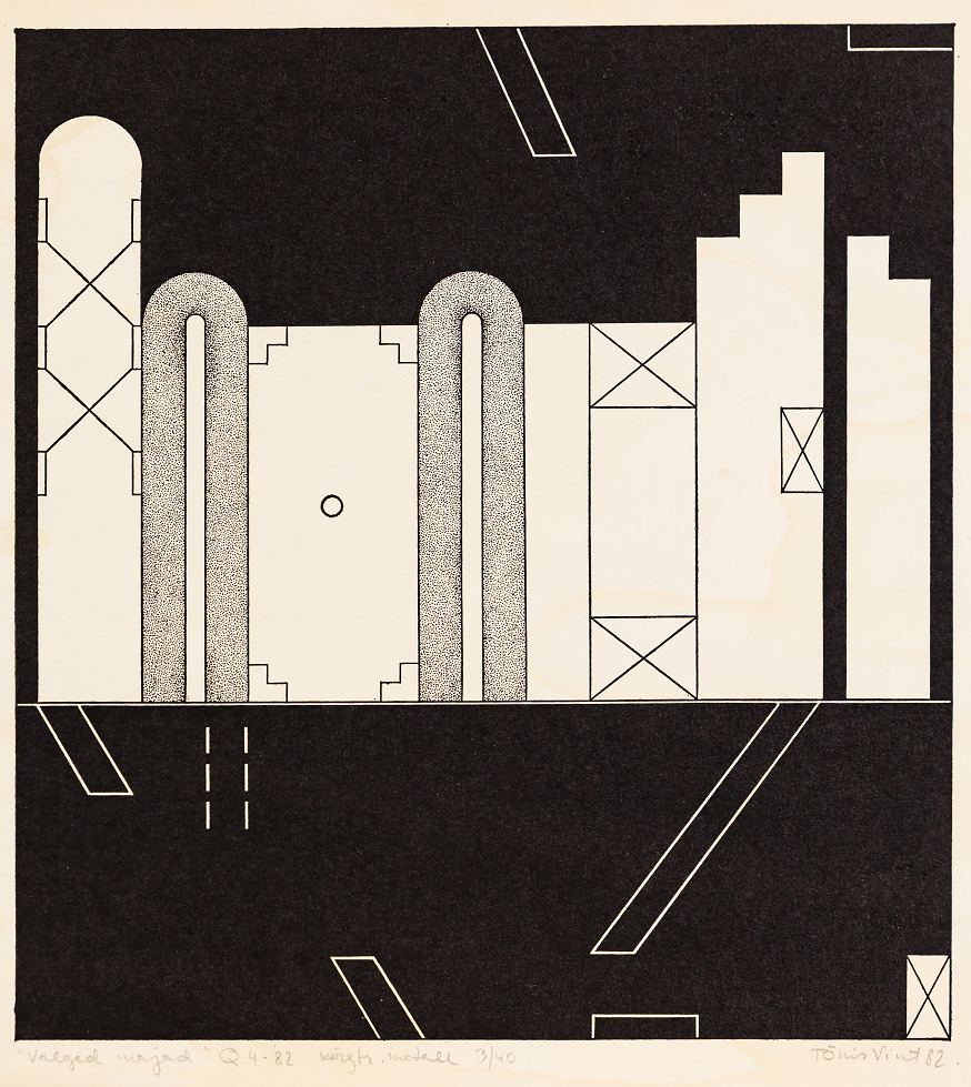 Tõnis Vint (1942-2019) 64 Valged majad 4-82 1982 Kunstiteadlane Elnara Taidre on kirjutanud: „Tõnis Vinti võib pidada Eesti kontekstis erakordse tähendusega isiksuseks – kunstnikuks, kunstimõtlejaks ja õpetajaks, kelle kunstikontseptsioon on olnud tõukejõuks paljude kunstivaldkondade ja põlvkondade esindajatele.“ Käesolev teos oli eksponeeritud 2012. aastal Kumu kunstimuuseumis toimunud suurel ülevaatenäitusel „Tõnis Vint ja tema esteetiline universum“ ning on reprodutseeritud Elnara Taidre koostatud samanimelises raamatus lk 194.