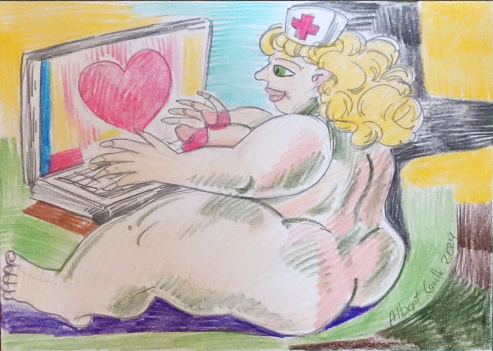 Armastus kompuutris, Albert Gulk Albert Gulki algupärast taidurlikkust toonitab fakt, et kunstnik ei kasuta oma joonistustes modelli ega foto abi ja toetub üksnes oma visuaalse mälu kujunditele Armastus kompuutris, Albert Gulk E-kunstisalongis Gulk Albert