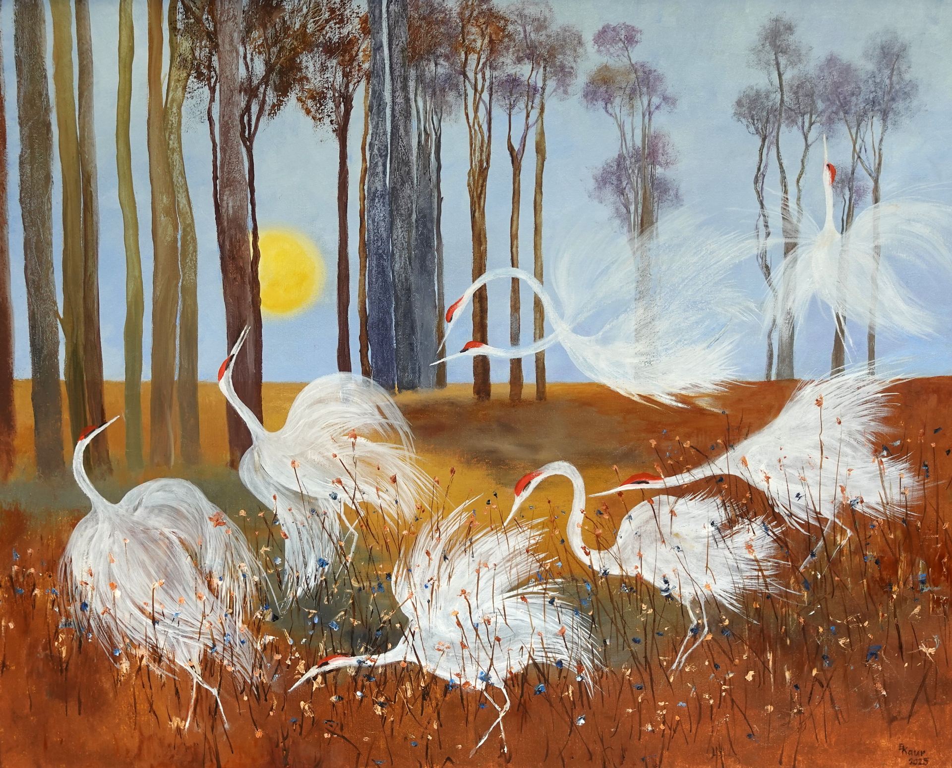 Praeguses väljapanekus on 18 maali aastast 2024 ja 2025. Maalidel on sumedad põllud täis lilli, sillerdav veepind ja kauged metsaviirud, aga samuti Jaapani õnnekured. Näitus on avatud 30. juunini.