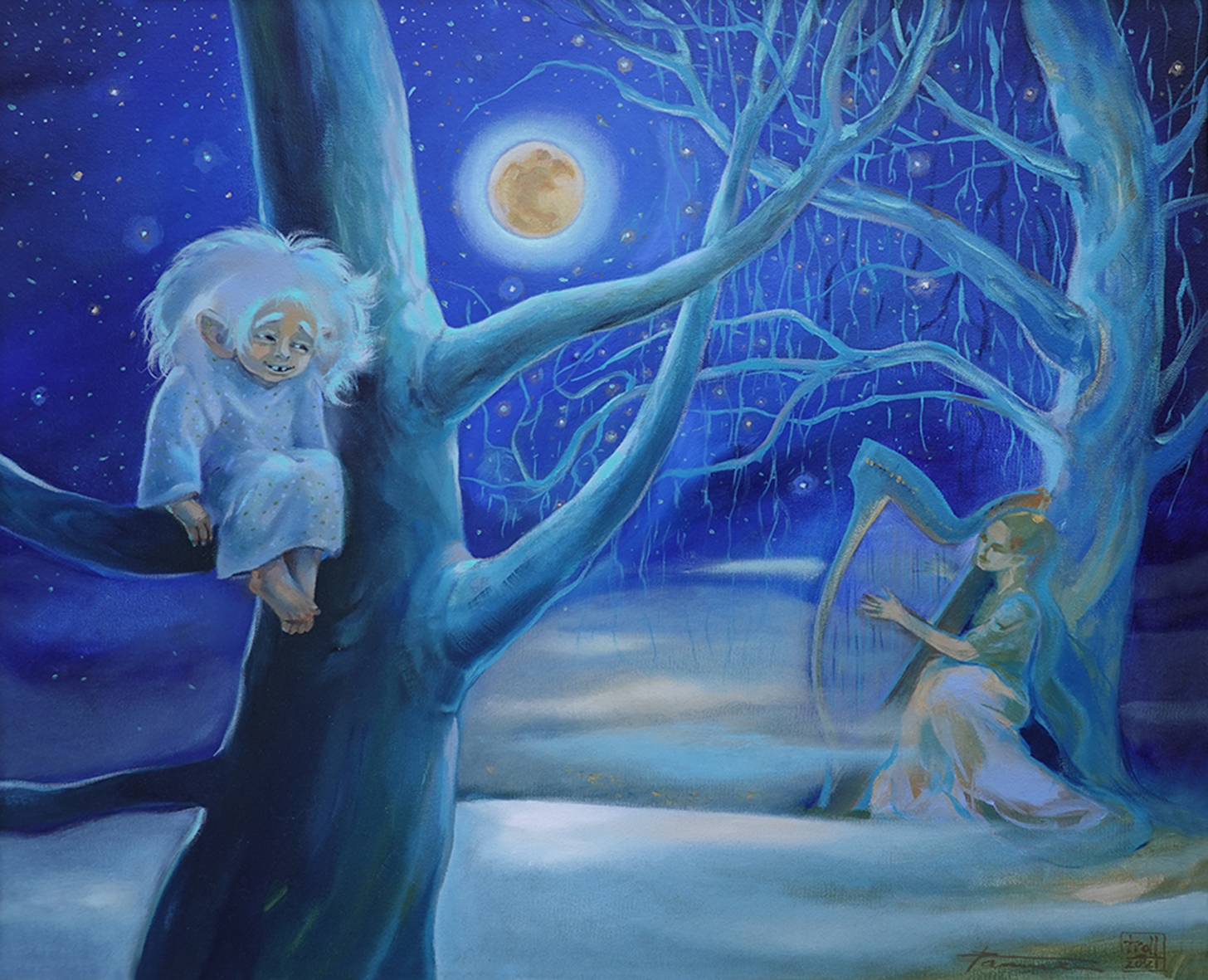 Pille Tammela (sünd 1971) Harfihelide lummas 2021 Õli, lõuend