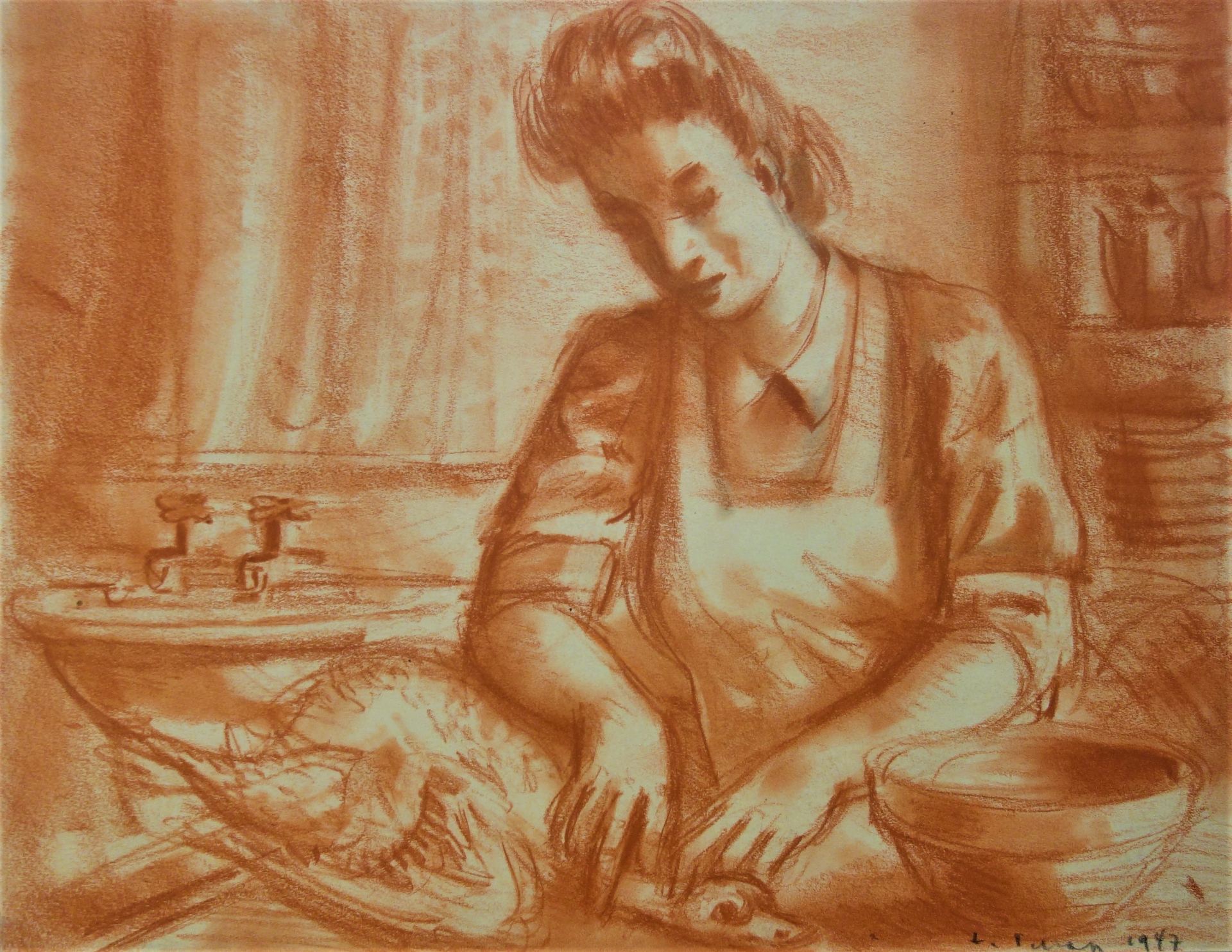 Erich Pehap (1912–1981) Köögis 1947 Sangviin, paber Lm 23,5x30 Hind: € 495 Ei ole müügil Erich Pehap (1912–1981) Kunstnik Erich Pehap sündis 1912