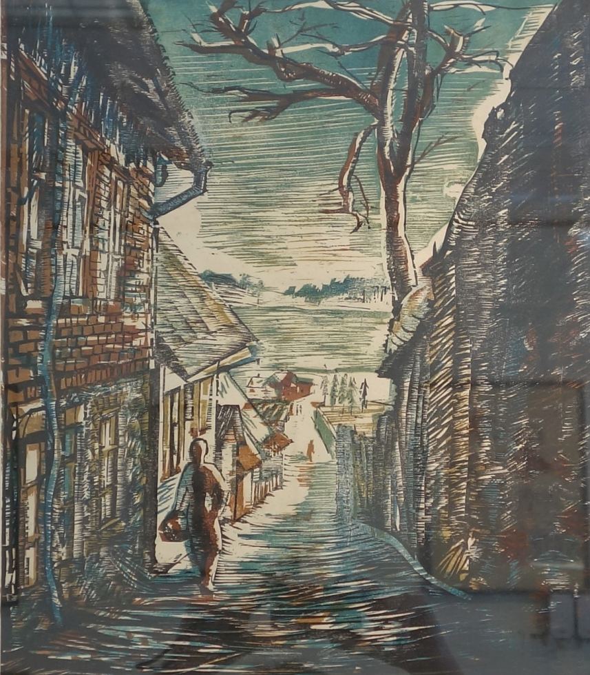 Erich Pehap (1912–1981) Liiva tänav 1939 Värviline vineerilõige, paber Hind: € 425 Müüdud Erich Pehap (1912–1981) Kunstnik Erich Pehap sündis 1912