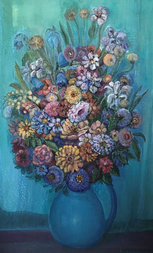 Lilled sinises kruusis, Valve Näitused mitmel pool Eestis alates 1959 Lilled sinises kruusis, Valve Janov E-kunstisalongis Janov Valve