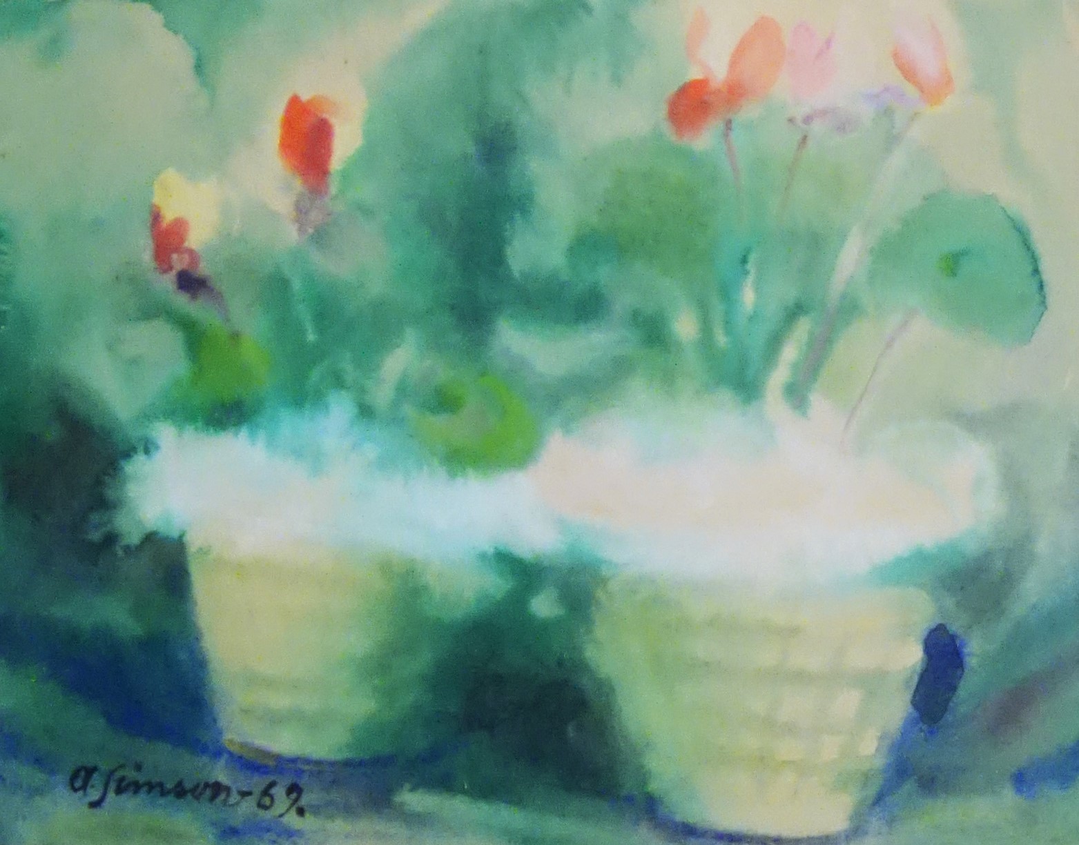 Lillekorvid, Arnold Simson E-kunstisalongis aastail tehniliselt mitmekesisemaks, varasemate teoste mahe lüüriline laad teisenes mediteerivaks ja omandas irreaalseid varjundeid Lillekorvid, Arnold Simson E-kunstisalongis Simson Arnold
