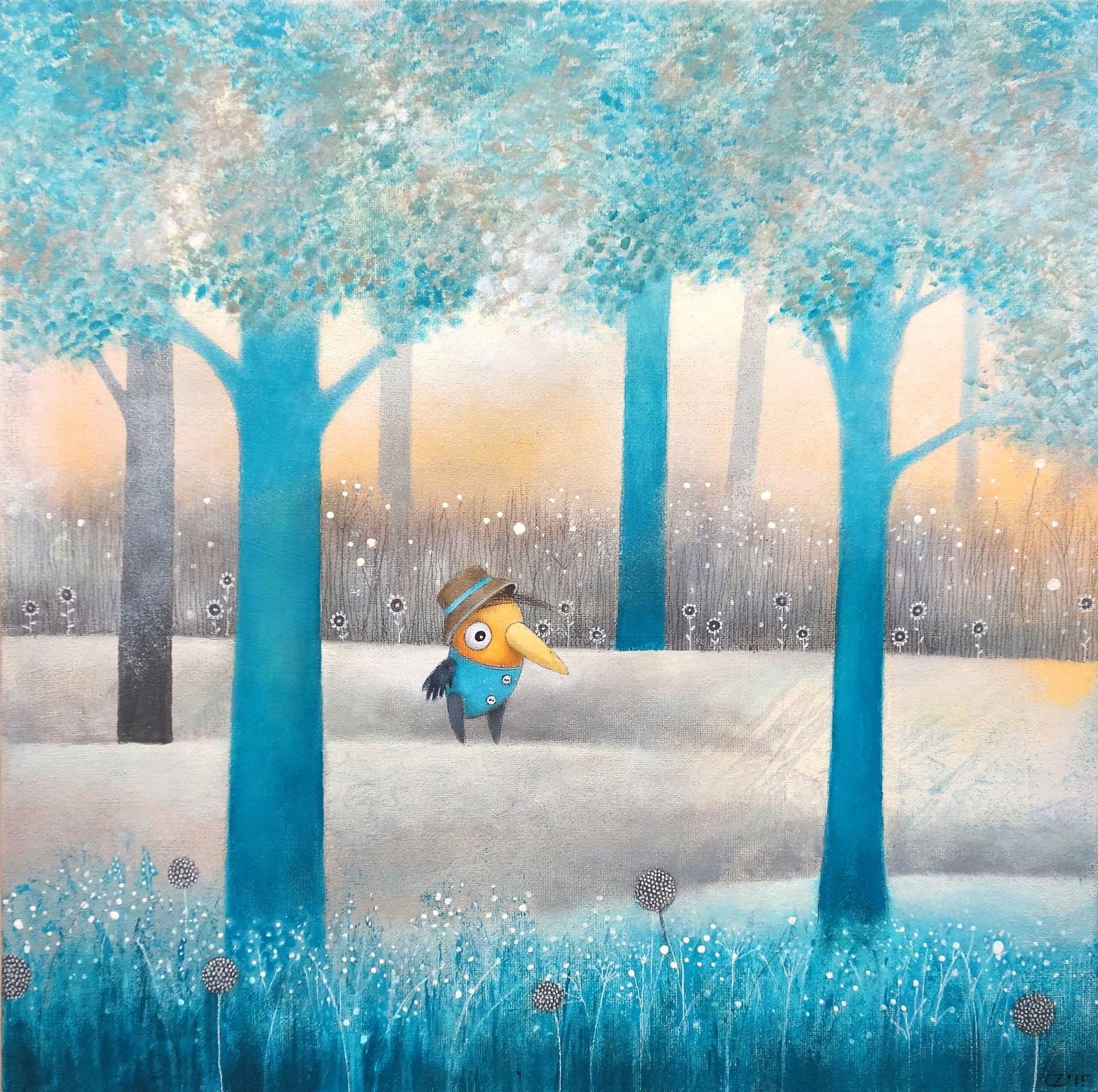 Catherine Zarip (sünd 1966) Linnuke metsas Originaalillustratsioon Autoritehnika, papp