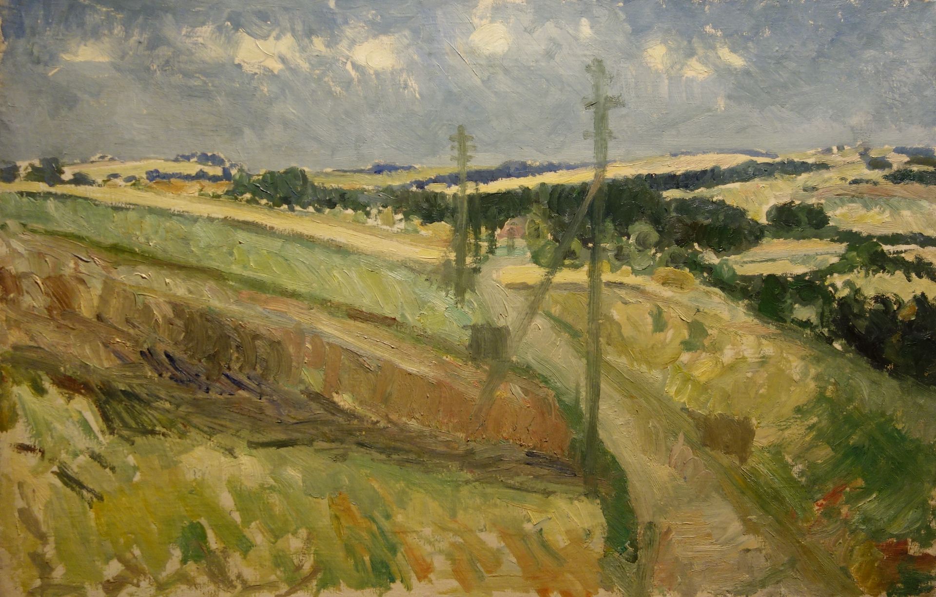 Johannes Uiga (1918–1998) Maastik elektripostidega Õli, lõuend 65x100