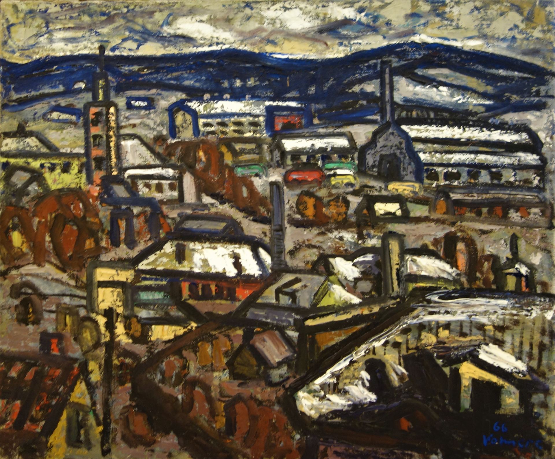 Enn Volmere (1908-1978) Maastik majadega 1966 Õli, lõuend