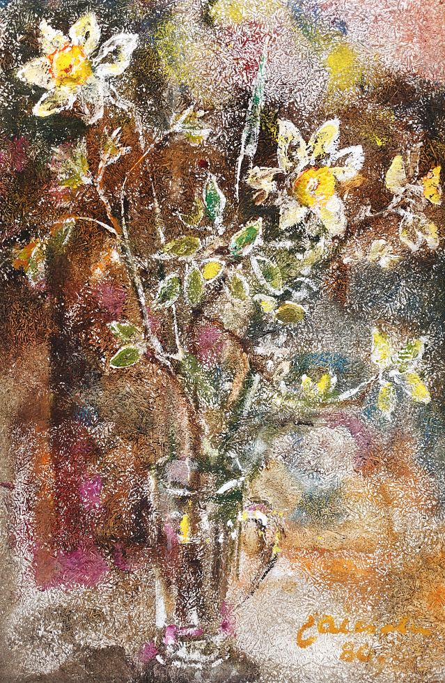 Efraim Allsalu (1929–2006) Nartsissid 1986 Õli, puitkiudplaat