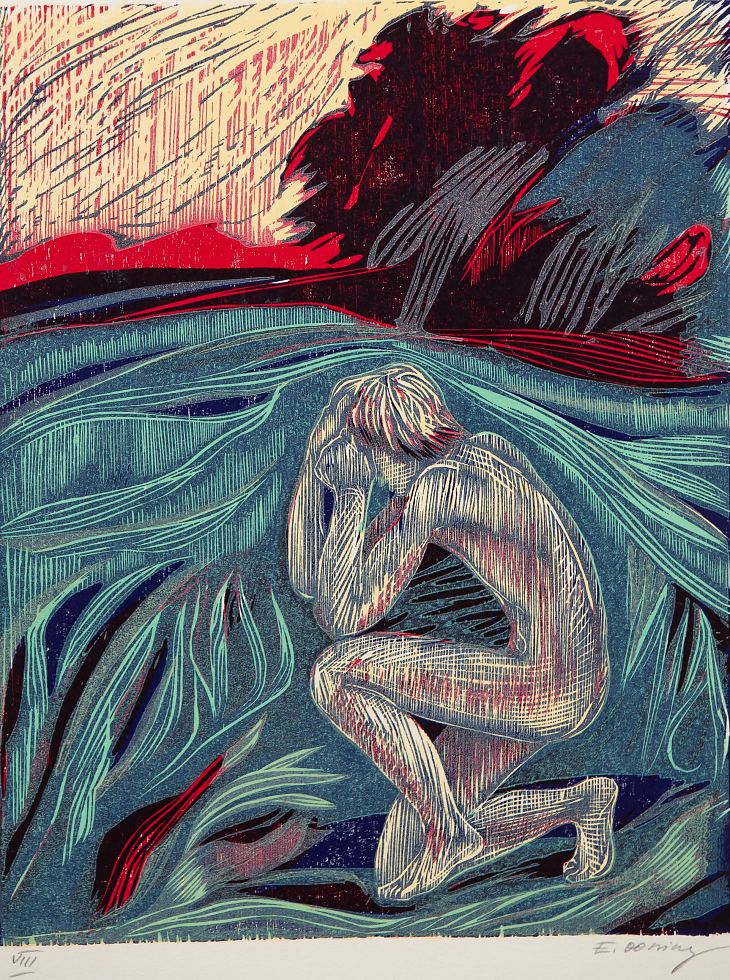 1975. Värviline puulõige, paber. Lm 41,5x36. Signatuuriga.