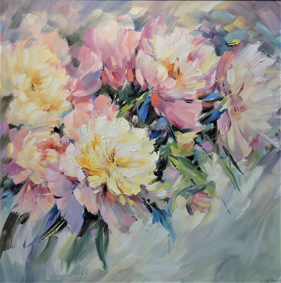 Jelena Liba (sünd 1949) Roosad pojengid I 2018 Õli, lõuend