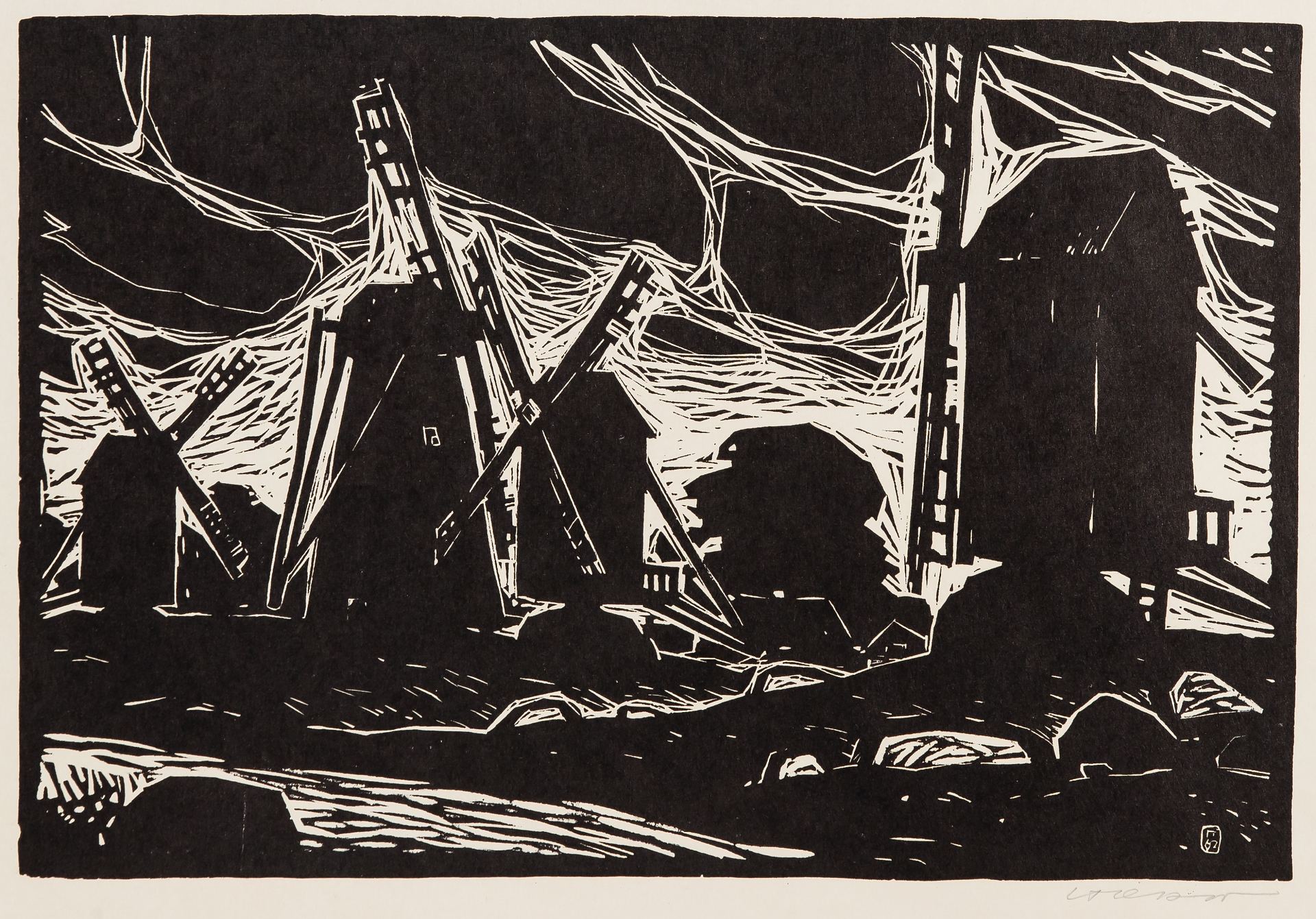 1962. Puulõige, paber. Lm 45x59,8. Signatuuriga.