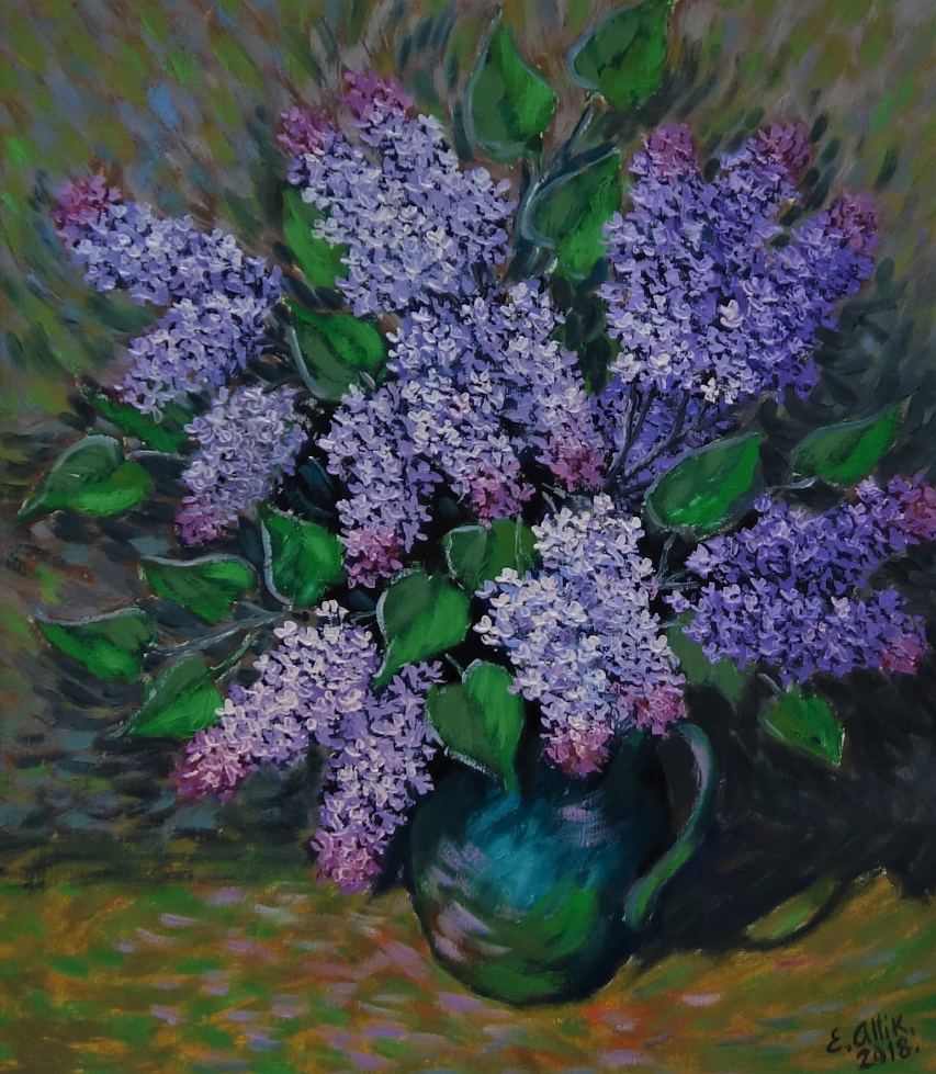Enno Allik (sünd 1936) Sirelid vaasis 2018 Õli, lõuend