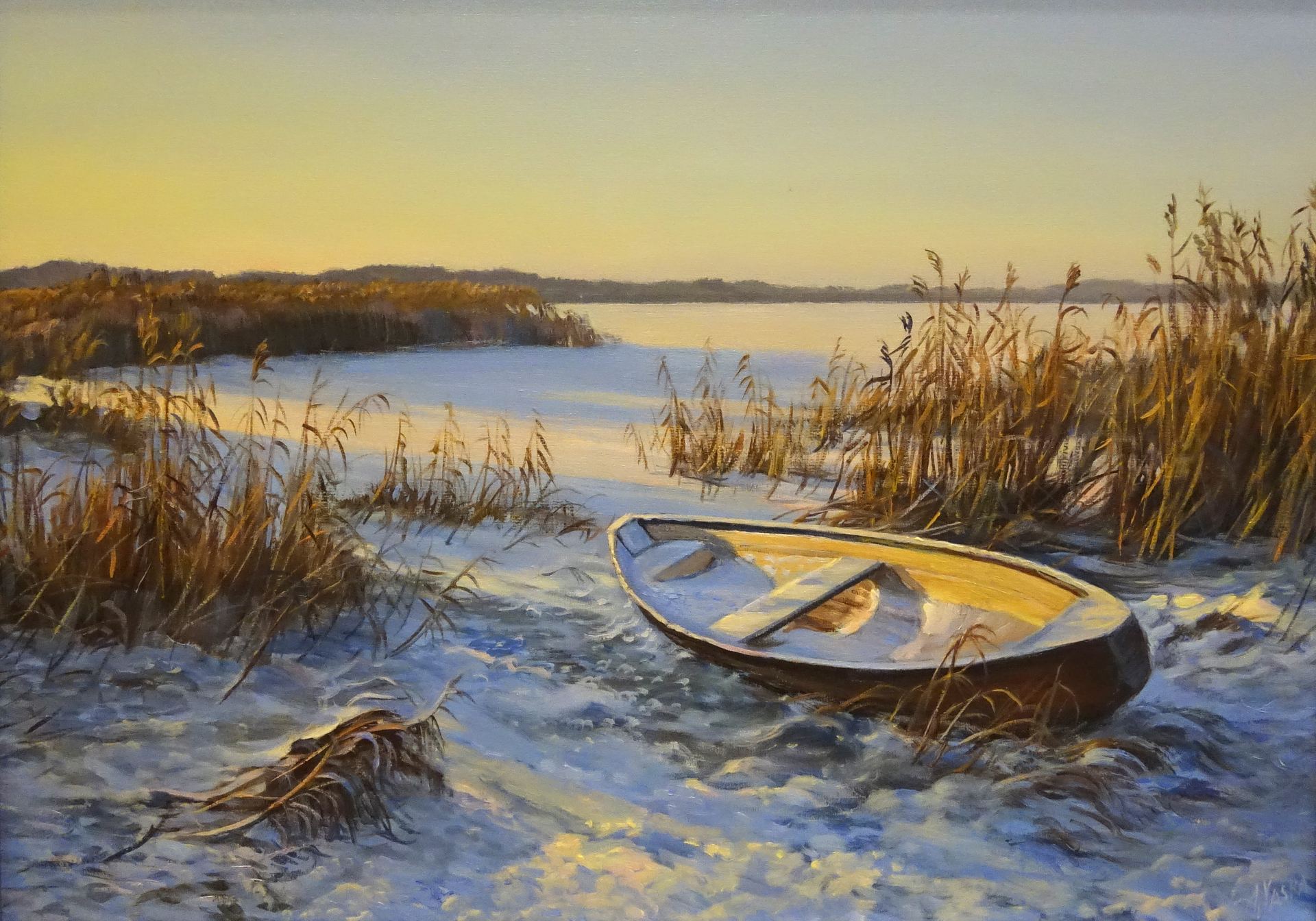 Aleksander Yaska (sünd 1967) Talvise järve kaldal 2024 Õli, lõuend