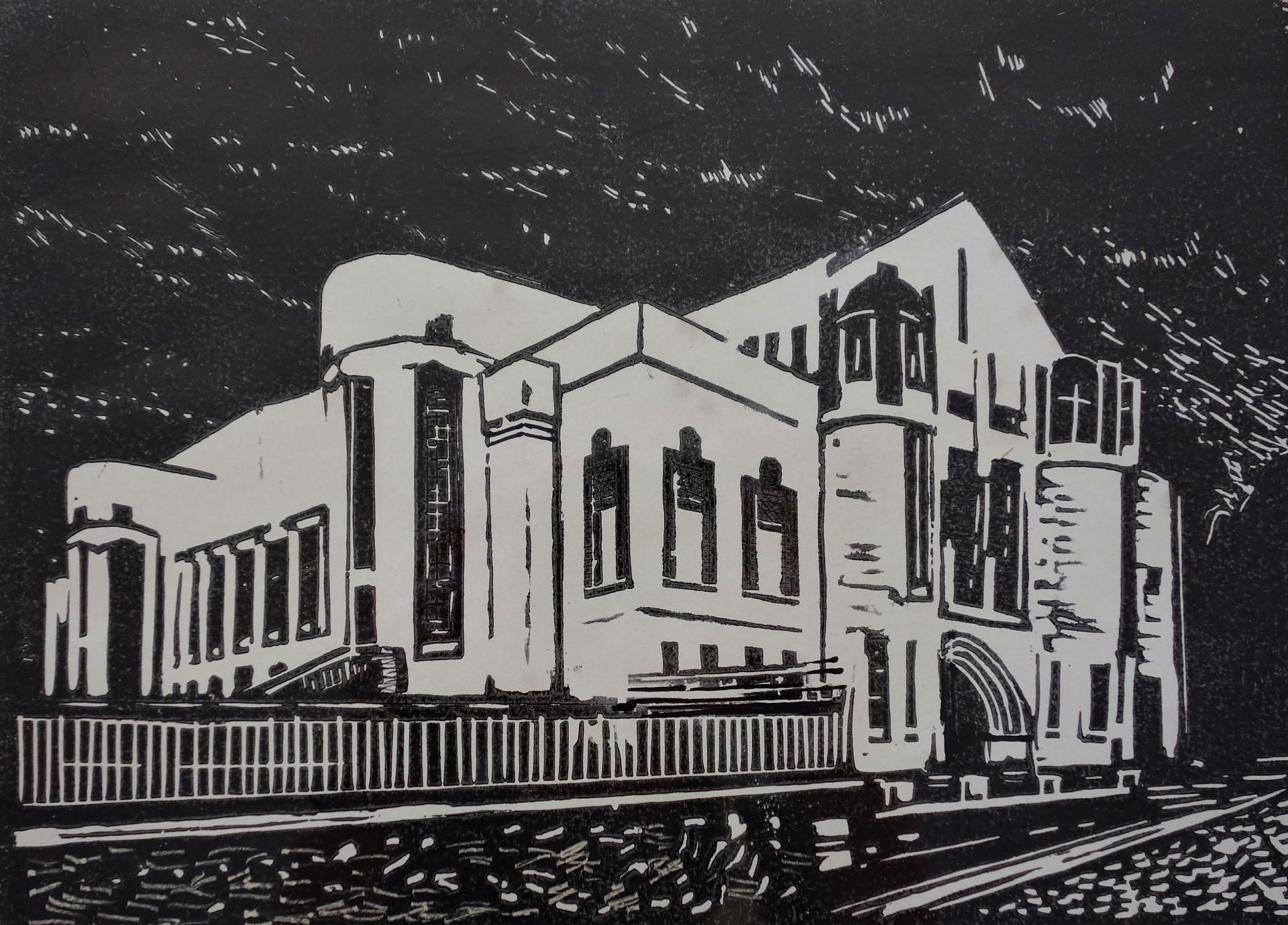 Juhan Püttsepp (1898-1975) Teater Vanemuine 1965 Linoollõige, paber